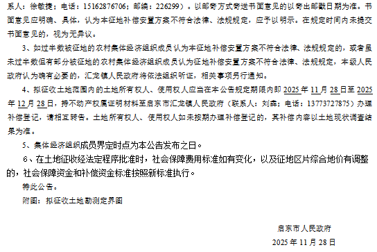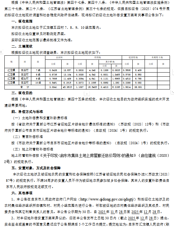 启东市人民政府征地补偿安置方案公告 启征补安置【2025】048号