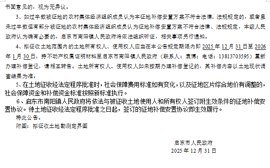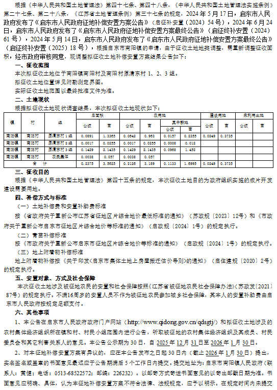 启东市人民政府征地补偿安置方案最终公告 启征终补安置[2025]59号