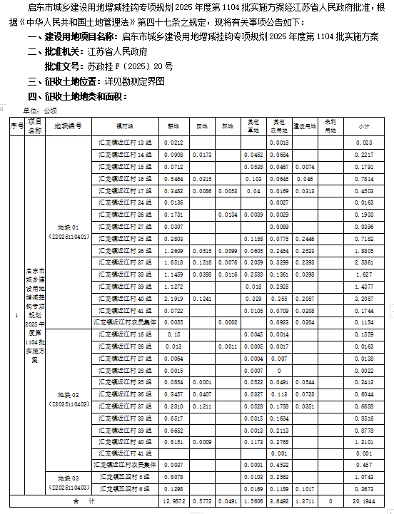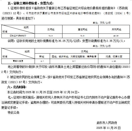 启东市人民政府征收土地公告 启征告〔2025〕19号