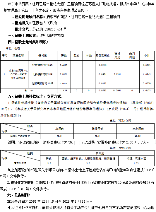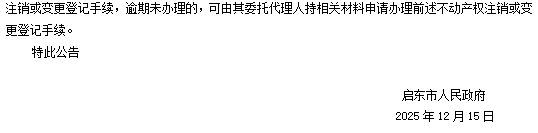 启东市人民政府征收土地公告 启征告〔2025〕24号