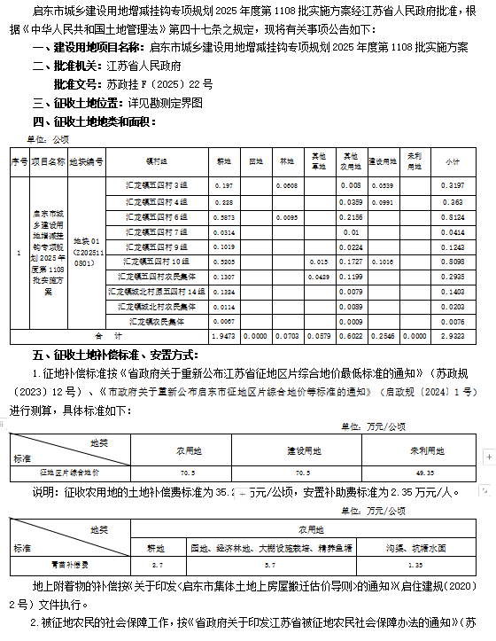 启东市人民政府征收土地公告 启征告〔2025〕23号