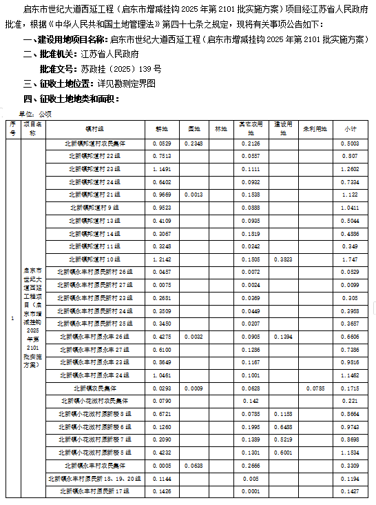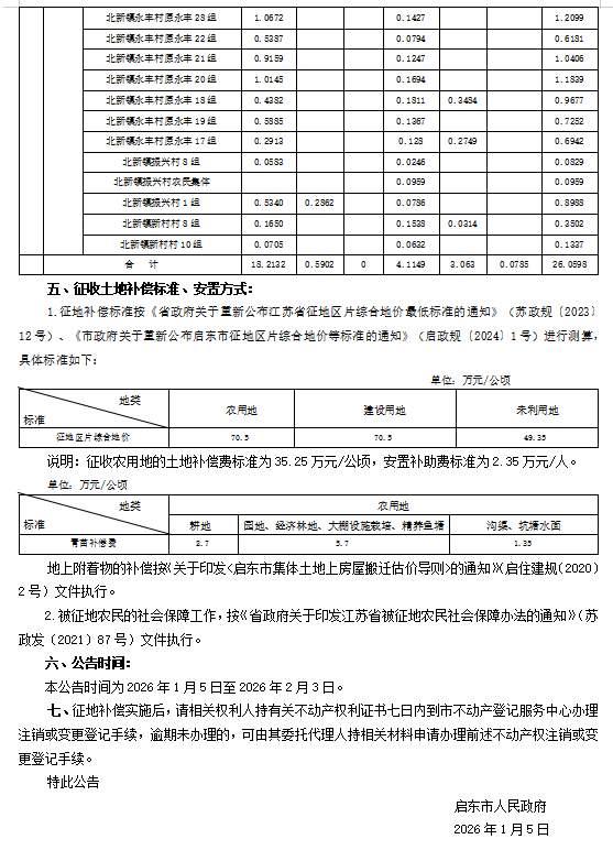 启东市人民政府征收土地公告 启征告〔2026〕1号