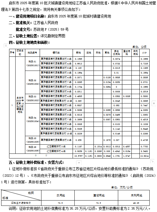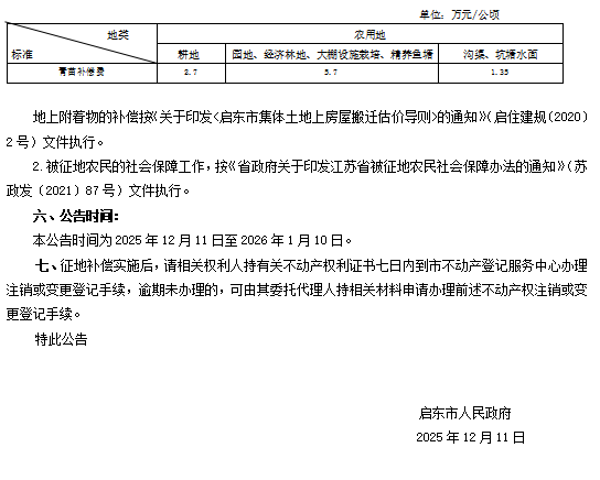 启东市人民政府征收土地公告 启征告〔2025〕21号
